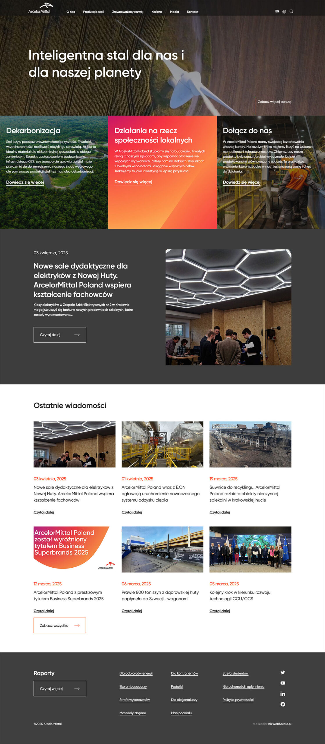 Dla ArcelorMittal Poland wdrożyliśmy nowoczesny serwis informacyjny oparty na TYPO3. W ramach projektu powstał również dedykowany intranet dla wykonawców. Serwis jest dostępny w wielu wersjach językowych i został dostosowany do wewnętrznych standardów korporacyjnych.