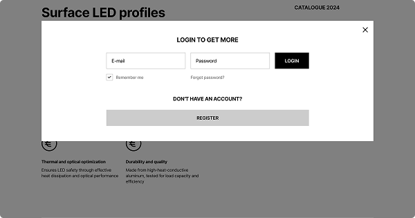 Po zalogowaniu użytkownicy otrzymują dostęp do szczegółowych specyfikacji technicznych produktów, dokumentacji oraz materiałów do pobrania, które nie są widoczne dla niezalogowanych odwiedzających.