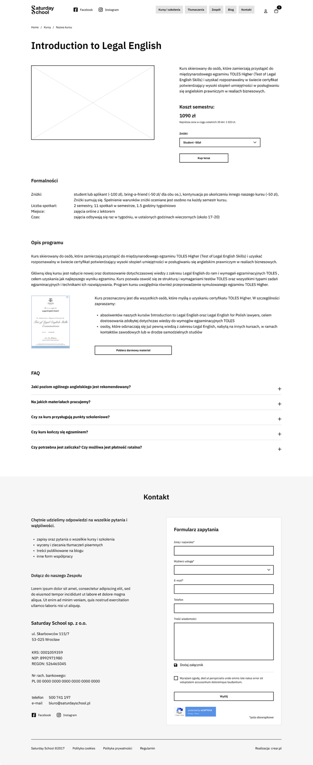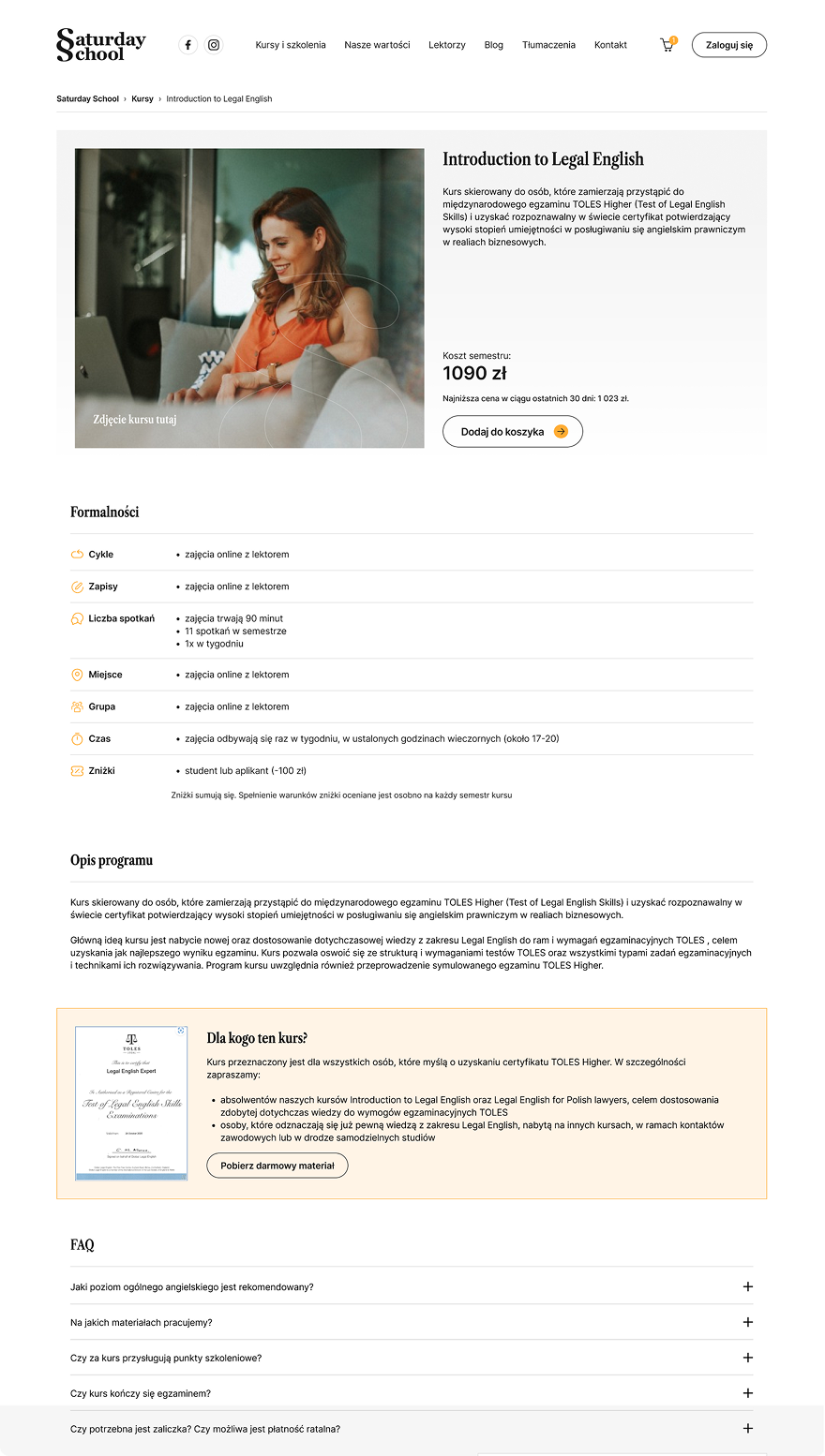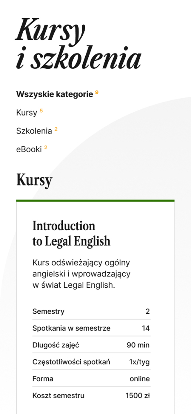Szczególną uwagę poświęciliśmy zaprojektowaniu intuicyjnej ścieżki zakupowej oraz przejrzystej prezentacji oferty kursów.